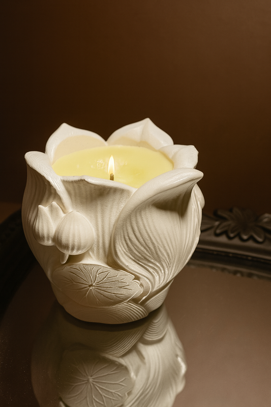 Lotus Blossom Candle: Bohemian Rose Scent, Handmade Gypsum Decor
