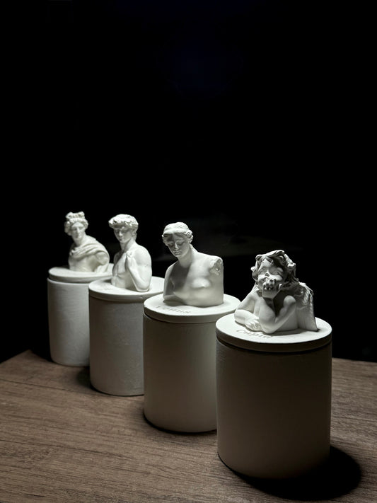 David Bust Aroma Candle: Handmade Gypsum Sculpture, Eucalyptus Scent
