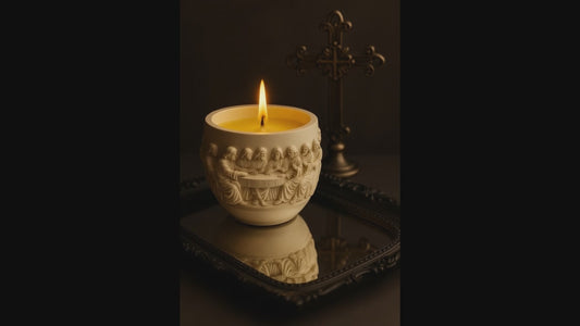 Last Supper Candle: Handmade Gypsum Biblical Relief, Ginger & Spice Scent
